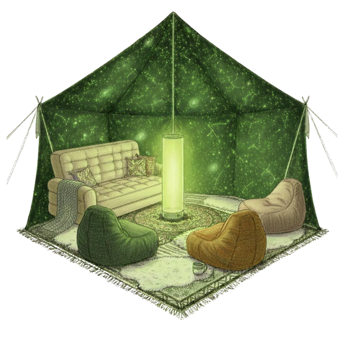 Great question! While we primarily offer our magnificent bell tent as the serene sanctuary at festival and outdoor event sites, we also work with venues to provide the same interior setup at indoor spaces - all we need is a minimum of 5m2 out of ear-shot from the hustle and bustle, and we can create an area of wellbeing at any indoor event, too.